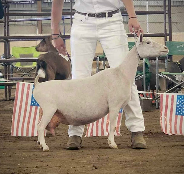 -2019 ADGA National Show 5th place 4-year-old, 2nd place Senior Get-of-Sire member, 5th place Senior Breeder's trio member, 5th place Dairy Herd member